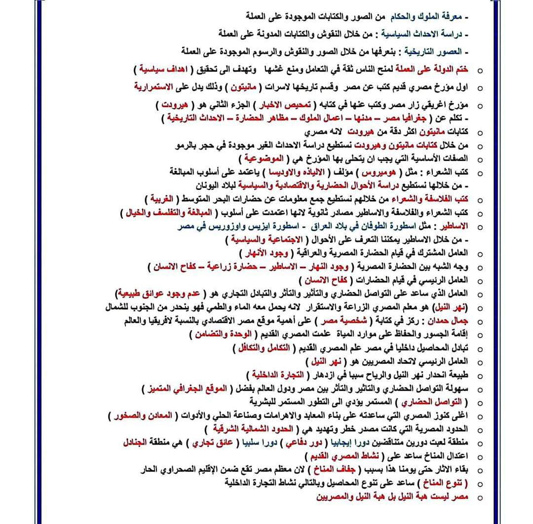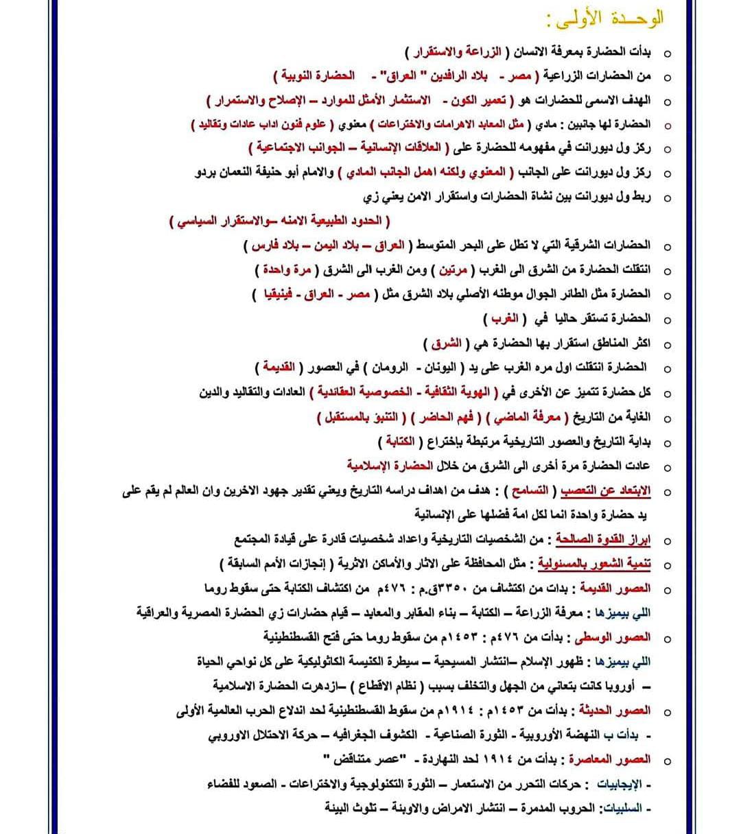 يستطيع طلاب الصف الأول الثانوي الاطلاع على مراجعة ليلة الامتحان في مادة التاريخ الترم الأول 2026 للاستذكار السريع قبل الامتحان من خلال الصور التالية: