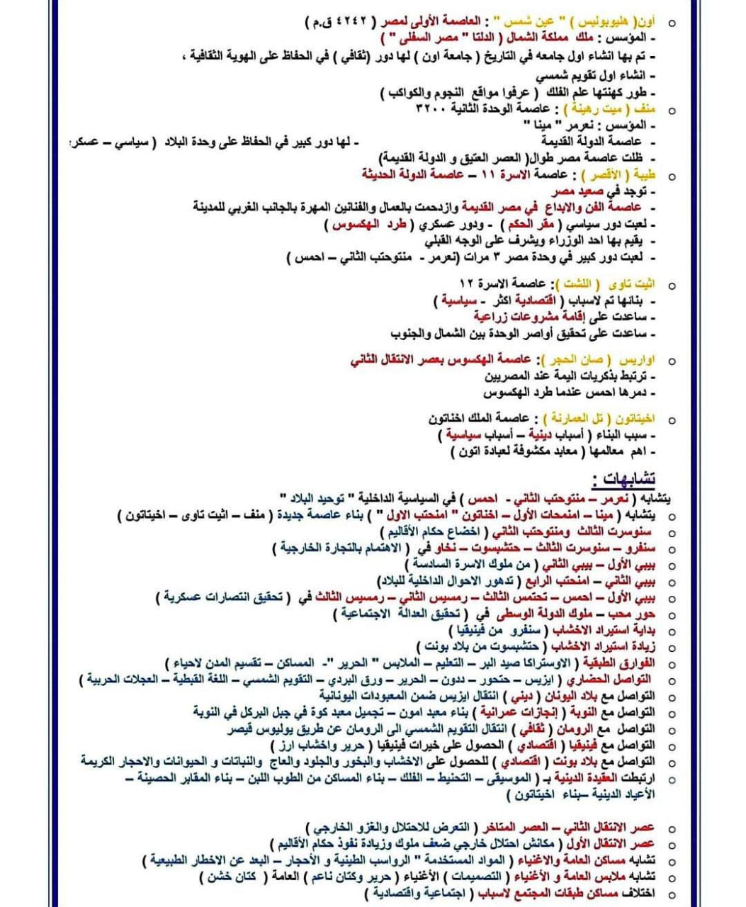 مراجعة ليلة الامتحان تاريخ أولى ثانوي 2026