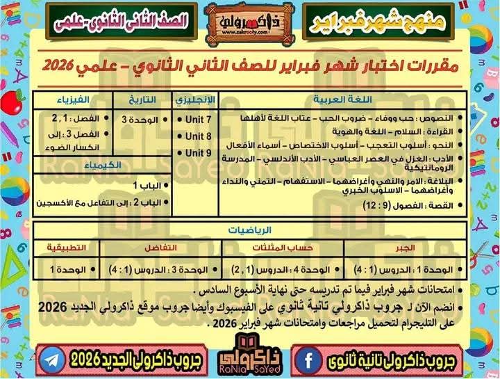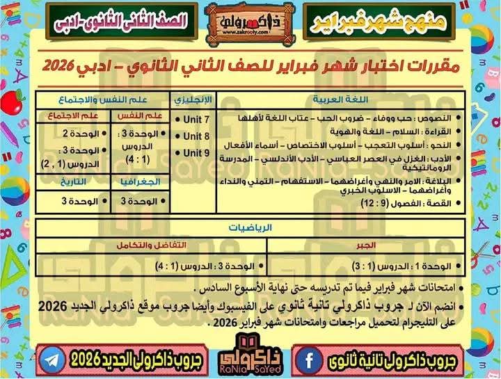 يشمل مقرر شهر مارس للصف الثاني الثانوي 2026 جزءًا مهمًا من مناهج الفصل الدراسي الثاني في مختلف المواد، حيث يتم التركيز على استكمال الدروس الأساسية مع التعمق في المفاهيم والتدريب على تطبيقها بشكل عملي.